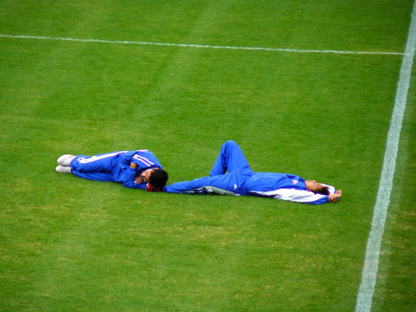 すごくきもちよさそうに芝の上で寝ころんでいる、清武&家長。